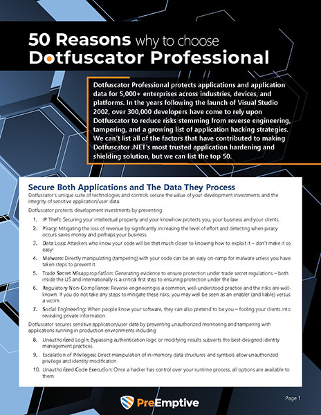 The #1 .NET obfuscation and in-app protection product for 17 years.